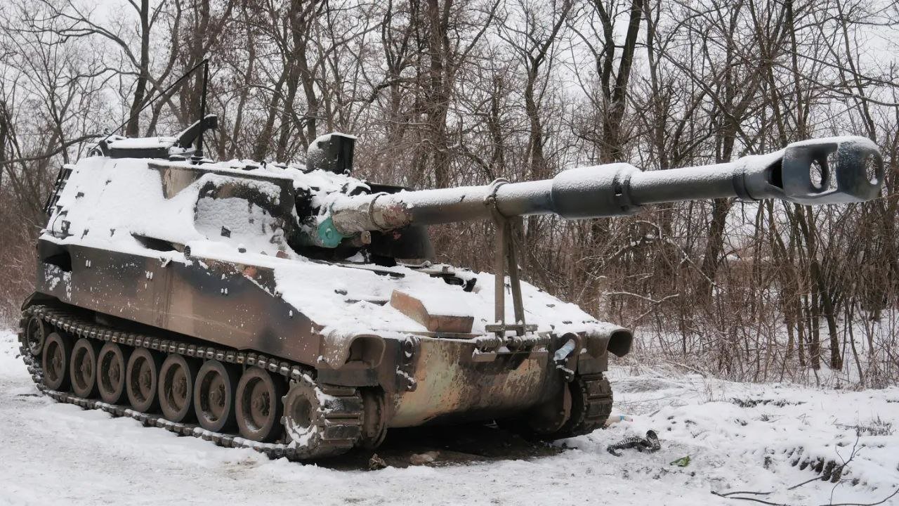 Zničena 155mm M109A5Ö, dodaná AFU z Lotyšska, poblíž Bachmutu ("Artěmovsk").