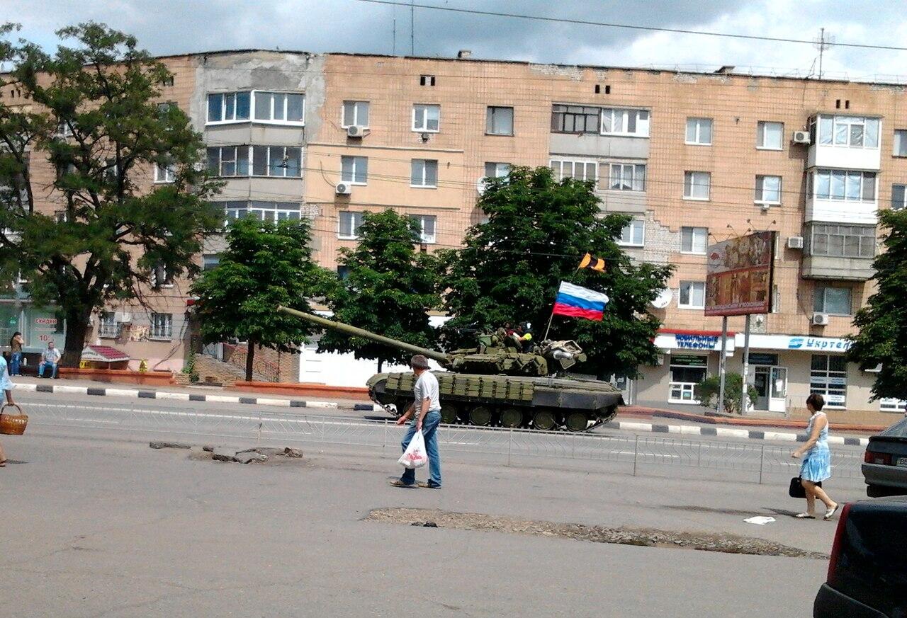 04.07. Tanky s ruskou vlajkou vjely do Krasnodonu