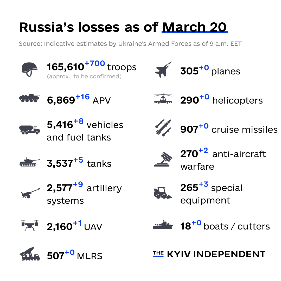 Neděle. Boje se aktuálně odehrávají na pěti respektive šesti hlavních úsecích fronty: V Bachmutu, kde Rusové postupují nyní jen minimálně a Ukrajinci podnikli na jihu města několik menších protiútoků, severně od Bachmutu, kde Rusové plíživě postupují, ovšem za cenu ohromných ztrát, mimo jiné díky nepříznivému terénu pro útočící armádu, dále u Vuhledaru, kde Rusové včera opět neúspěšně rozbíjeli svou techniku o ukrajinskou obranu, u Avdivijky, kde se Rusům částečně daří na severní straně města posouvat frontu směrem na západ, na rozdíl od jižní strany, kde včera Ukrajinci zničili ruský konvoj, dále u města Kreminna, kde se Rusové pokouší, prozatím neúspěšně, prorazit dobře zakopané ukrajinské jednotky, a nakonec severně od Kupjansku, kde se Rusům podařilo znovu dobýt ukrajinské předmostí ve Dvoričném a posunout frontu o pár kilometrů jižněji. Rychlost postupu ale ani na – z ruského pohledu – nejúspěšnějších úsecích nenaznačuje, že by se Rusům mohl podařit nějaký zásadní průlom. Naopak Rusové přesouvají velké množství techniky k Záporoží, kde očekávají ukrajinskou ofenzivu. A skutečně, Ukrajinci dnes opět provedli průzkum bojem jižně od Orichivu. A teď zas pár novinek, které tomu všemu dají kontext: