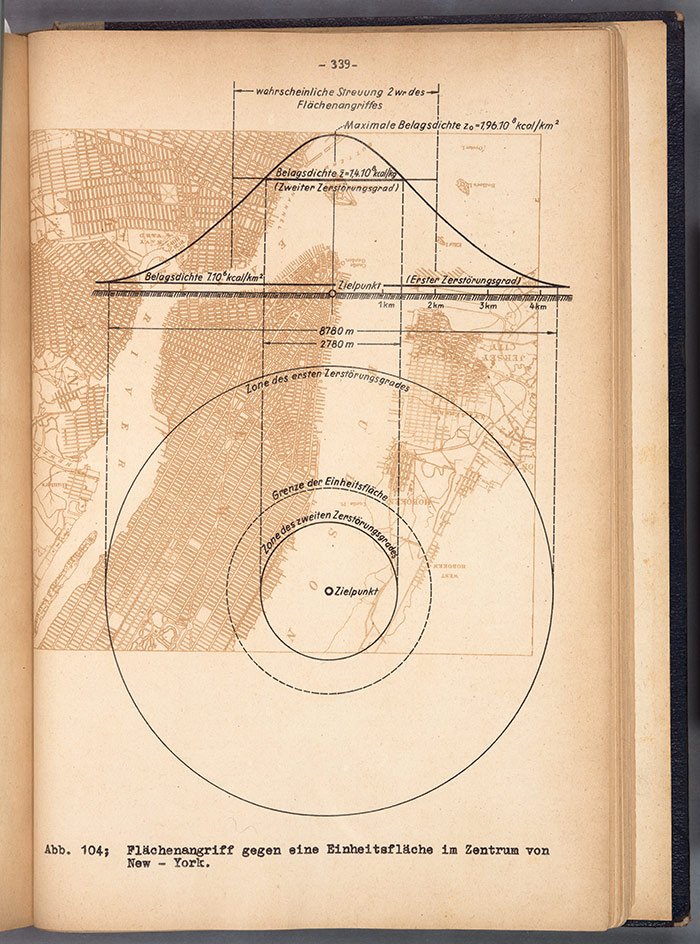 Mezi stránkami Sängerovy zprávy je několik map New Yorku s kruhy označujícími
