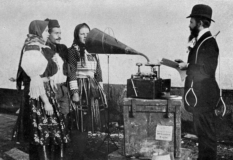 Na snímku vidíte přerovského etnografa Františka Pospíšila (1885-1958) při nahrávání fašankových písní ve slováckém Vlčnově roku 1911. Pospíšilův význam na poli etnografie a muzejnictví je velice významným právě díky využívání moderní záznamové techniky. Pořizoval zvukové záznamy na fonograf, natáčel na kameru, ale i fotografoval a k daným fotografiím dělal podrobné popisky. Mezi jeho nejdůležitější výzkumy patří studium Moravských Charvátů na Mikulovsku - zvukové zaznamenávání jejich písní a řeči na fonograf (viz obrázek). Výzkum mečových tanců - dokumentoval je prostřednictvím fotografií a filmových záznamů, a tím o nich zachoval povědomí dalším generacím. Poněkud překvapivě se ale věnoval i studiu jihozápadních indiánských kmenů se zachovalou původní kulturou - jednalo se o tzv. Pueblany (Hopi, Zuni, Tewa), Navahy a Apače.