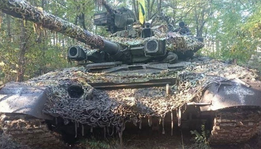 Ukrajinský tank T-64BM "Bulat" kdesi na frontě.