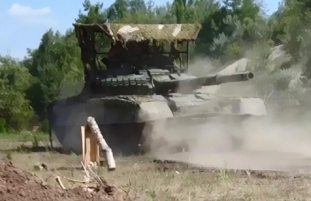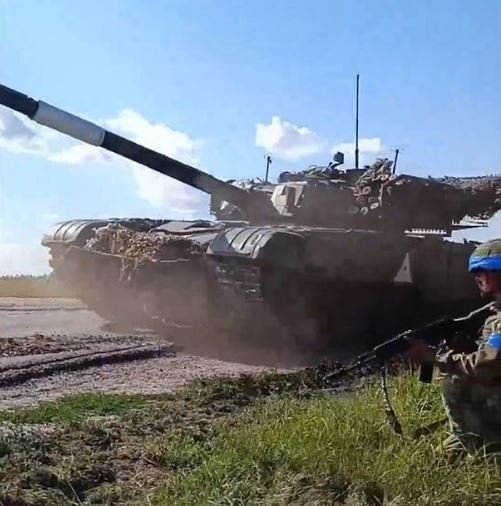 Polskem dodaný tank PT-91 Twardy od 22. mechanizované brigády ukrajinských ozbrojených sil, zde během operací v Kurské oblasti.