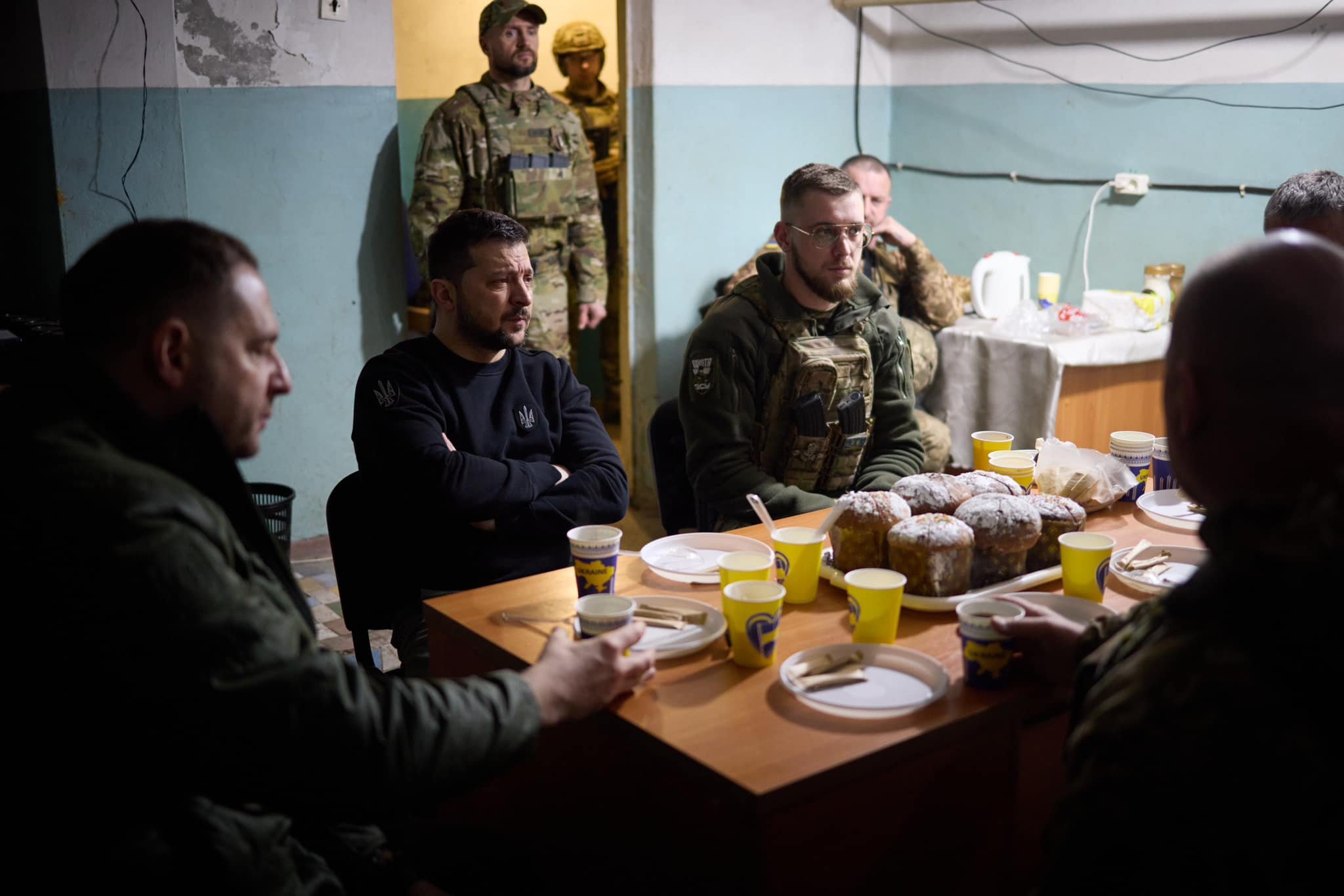 Prezident Volodymyr Zelenskyj navštívil vojáky bojující v Avdijivce v Doněcké oblasti. Hovořil s vojáky námořní pěchoty, obojživelných útočných, mechanizovaných a dělostřeleckých jednotek a poděkoval jim za jejich službu. "Mám tu čest zde dnes být a poděkovat vám za vaši službu, za obranu naší země, našich rodin," řekl Zelenskyj. Vojákům také popřál k Velikonocům a držel s nimi minutu ticha na památku padlých bojovníků. Následně některým z nich předal státní vyznamenání. Podle geolokace byl prezident zhruba 3 kilometry od frontové linie (!)