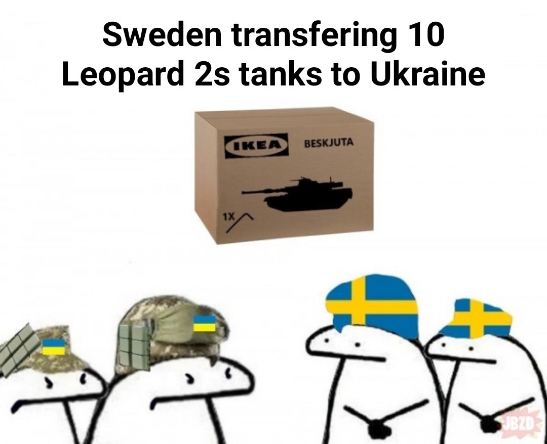 Tu srandu si dělají sami Ukrajinci, viz dva ukrajinští vojáci přebírající švédské tanky. Schválně, kdo si všiml jejich přileb?