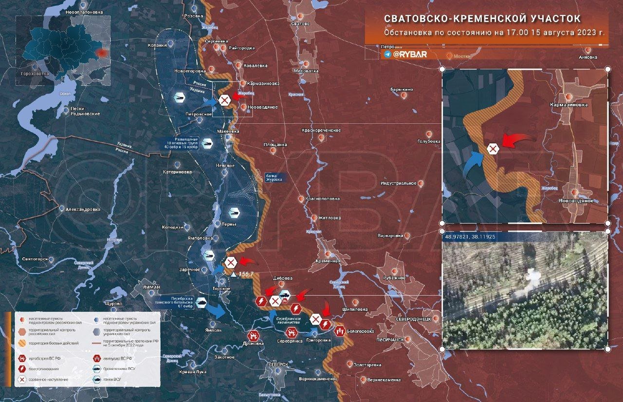 Svatovsko-Krememenskij úsek, stav k 15. srpnu 2023 v 17.00 hod.