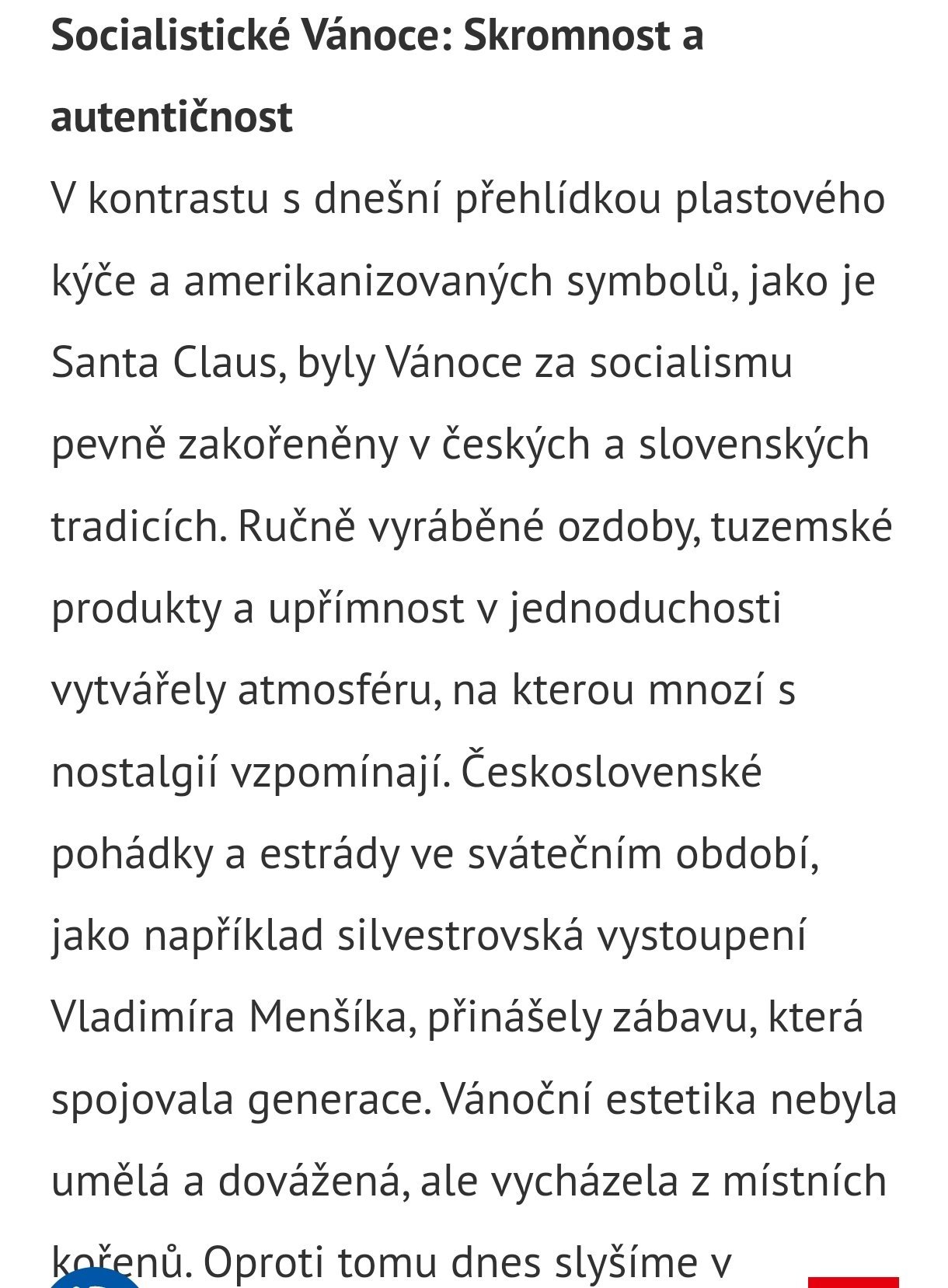 Také jolka se nám vydařila. Děda Mráz přišel, vous po kolena, v kožíšku blechu a v košíčku cosi na dně. O Kamčatce vyprávěl, soba nám diafilmem přiblížil, jak na celinách vítr duje připomněl a kapitalistu tvrdým slovem odsoudil. Po projevu sem tam dárek rozdal a pak nás vyzval, abychom se poveselili tanečkem Nikde vodky něnašol. Byl to pěkný večer. Škoda, že kouzelný dědeček Mráz odešel příliš brzy, asi do tajgy, a nemohl nám o půlnoci vysvětlit, kam se ztratilo šestnáct zimníčků. My jsme je sice nepotřeboval, neboť plamének, který děd v srdci zažehl, hřál, ale maminky ze staré školy, jež teplo jolky nikdy nepoznaly, nás bily a laskavého dědu Mráze, od něhož jsme i celkem nepoužité lízátko dostali, nazvaly starým chmatákem. Ale to náš pionýrský kolektiv jen stmelilo. Viděli jsme dědu stále čistého, s vousem bílým a sobem, věrným přítelem, na provázku.