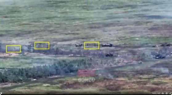 Dlhšie zábery z ruského bezpilotného lietadla ukazujúce odrazenie jedného z ukrajinských záloh v Záporoží.