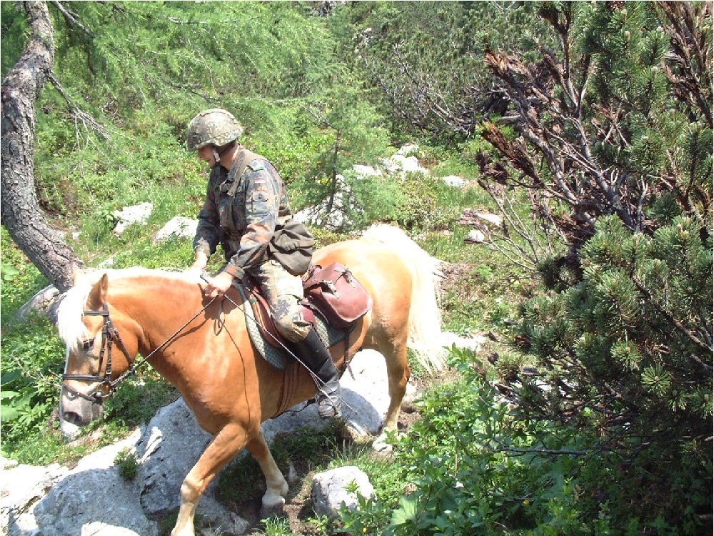 Nepodceňoval bych ani psychologický efekt (běžícího koníka). Jinak koně používají i u horských jednotek Bundeswehru a to nejen nošení nákladu.