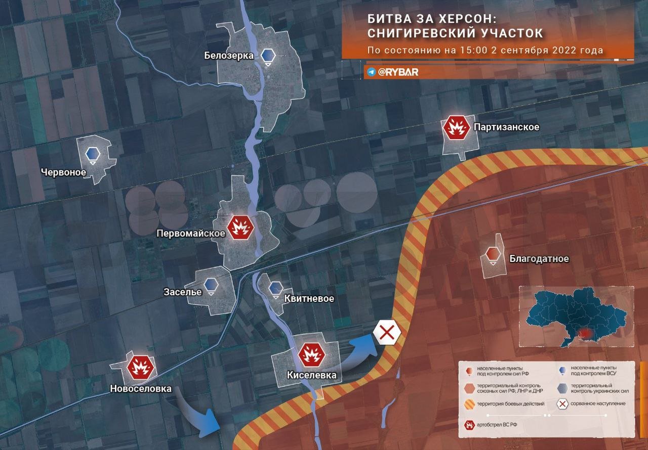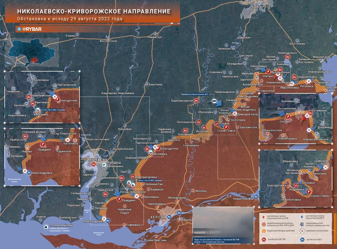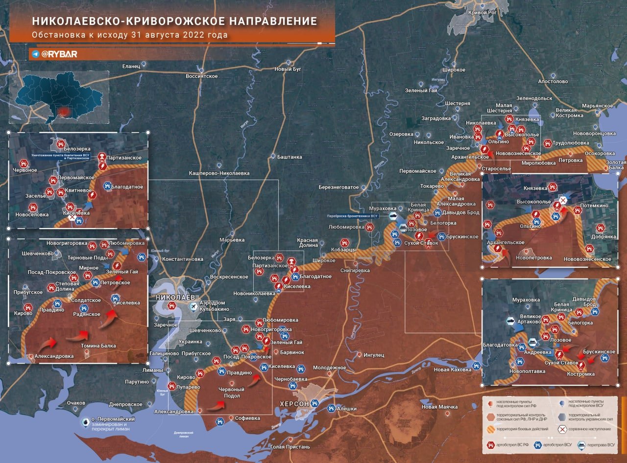Situace v Nikolajevsko-Krivorožském směru se stihla změnit za tři hodiny (předchozí shrnutí jsme přinesli ve 21.00 (https://t.me/rybar/37889)).