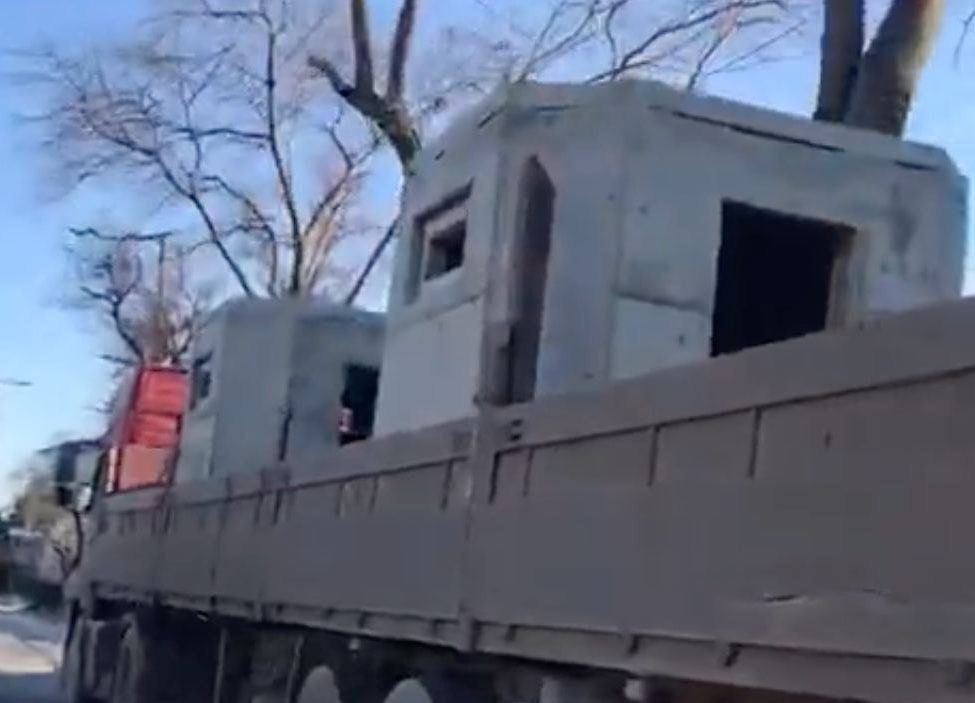 Na okupovaném Krymu se Rusko stále více snaží vybudovat obranné kapacity. Kamiony s betonovými bunkry byly spatřeny v Sevastopolu jedoucí na sever. Tato konstrukce již vypadá poněkud upraveně, ale možná je jenom z jiné fabriky. Myslím že ony kruhové kryty (i betonové jehlany) se vyrábí v obsazeném Mariupolu. Tohle by tedy mohlo být vyráběné přímo někde na Krymu (když jeli přes Sevastopol).