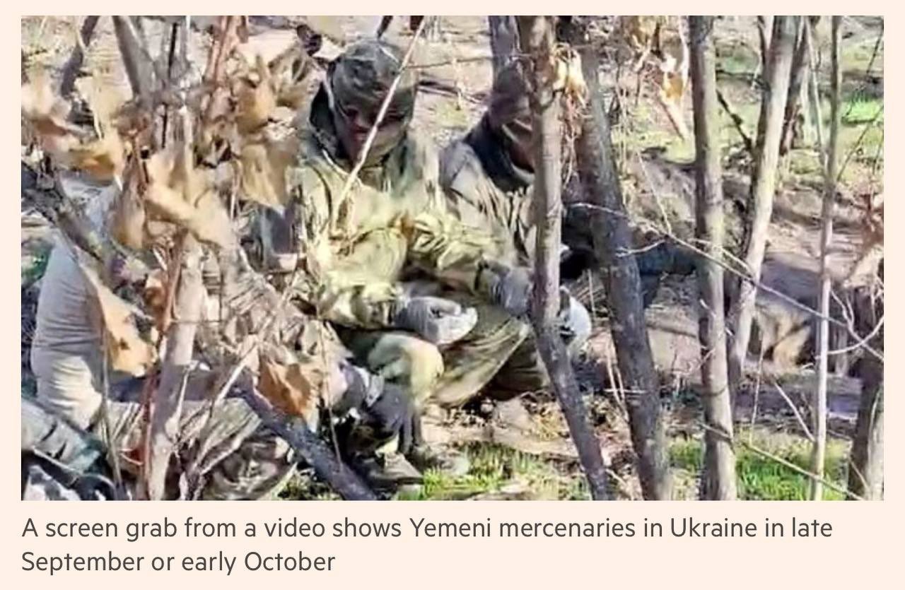 Rusko naverbovalo v Jemenu několik stovek hútíjských povstalců do války proti Ukrajině, uvedl dnes list The Financial Times. Tato operace podle listu dokládá rostoucí sepětí Moskvy s Teheránem a jeho spojenci z řad militantních uskupení na Blízkém východě, mezi které patří i hútíjští povstalci v Jemenu. Rusko se podle jemenských analytiků snaží získat užitek z jakékoli skupiny operující u Rudého moře či na Blízkém východě, která je nepřátelská vůči USA. Chudý Jemen se jeví místem, kde lze snadno naverbovat žoldnéře. Verbování podle deníku začalo ještě v létě, jeden kontrakt měl datum 3. července. Jeden z rekrutů v SMS sdělil, že někteří Jemenci byli ostřílení válečníci, ale hodně z nich nemělo žádný výcvik. Tvrdil, že je podvodně vylákali do Ruska, kde podepsali kontrakty, které si ani nedokázali přečíst. "Ocitli jsme se pod palbou. Létaly miny a drony, hloubili jsme kryty," vylíčil jeden z mužů. "Nemůžeme si ani pět minut odpočinout, jsme tak unavení," stěžoval si. Jiný Jemenec vylíčil, že mu slibovali odměnu 10 000 dolarů (243 000 Kč) a plat 2 000 dolarů měsíčně a případně i ruské občanství za práci v ruské továrně na drony. Když v září dorazil do Moskvy, celou skupinu násilím vzali z letiště a odvezli na místo vzdálené pět hodin od Moskvy, kde jim muž hovořící jednoduchou arabštinou vystřelil z pistole přes hlavy, když odmítali podepsat smlouvy vyhotovené v ruštině. "Podepsal jsem, protože jsem se bál," řekl. Dodal, že je pak odvezli v autobusech na základnu, kde podstoupili základní vojenský výcvik, a že mezitím hodně členů z původní skupiny na Ukrajině zahynulo.