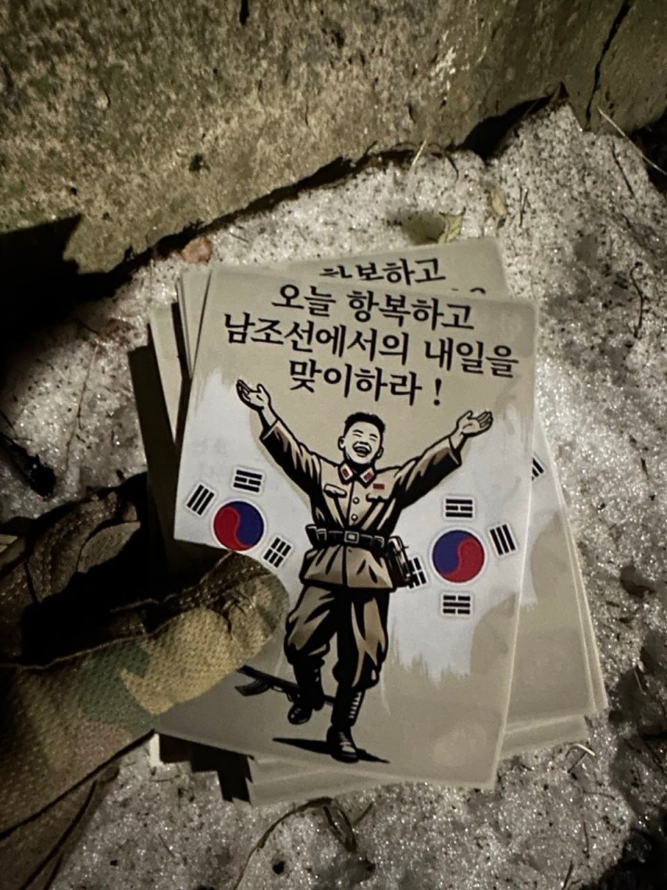 Ukrajinské letáčky nabádající Severokorejské vojáky, aby se vzdali. Drony shazují nad severokorejskými vojáky v Kurské oblasti letáky se vzkazem: "vzdejte se za zítra lepší život v Jižní Koreji".
