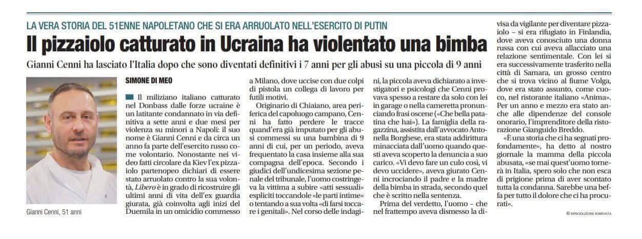 Tak ten zmíněný Ital zajatý ukrajinskými vojáky poblíž Kupjanska v Charkovské oblasti, se ukázal být pedofil. V Itálii byl odsouzen k 7 letům vězení.