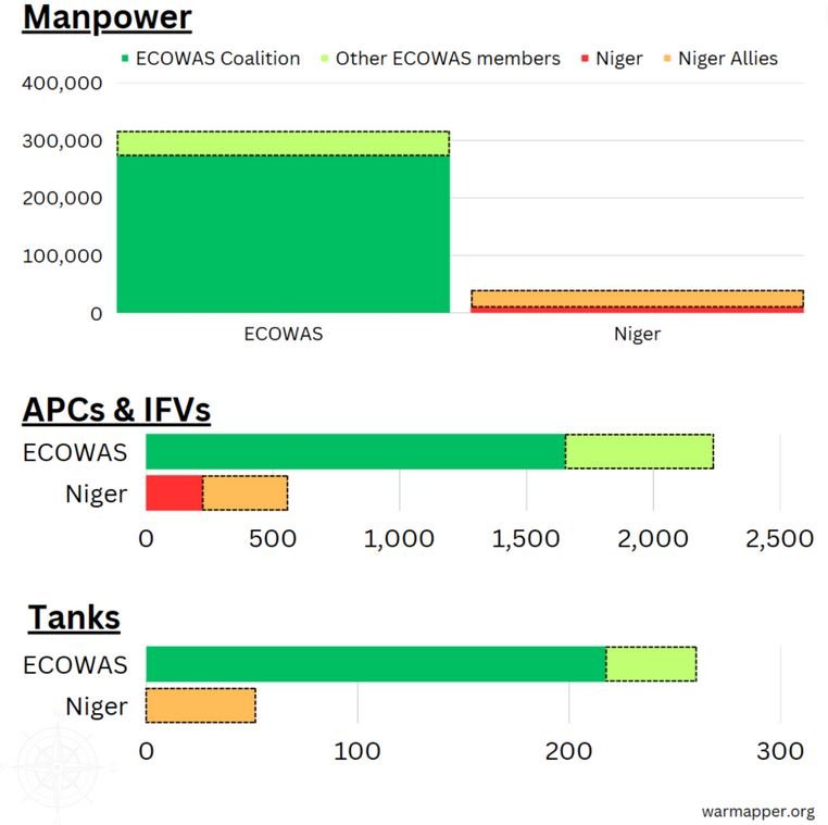 Nigérie, Senegal, Pobřeží slonoviny a Benin souhlasily s účastí na možné vojenské intervenci ECOWAS proti Nigeru. Guinea, která byla v roce 2021 po vojenském převratu odstavena z ECOWAS, intervence nepodpoří. Mali a Burkina Faso prohlásily, že pokud dojde k zásahu, podpoří Niger. Někteří členové ECOWAS se ještě nezavázali k zapojení do potenciální intervence: Guinea Bissau, Kapverdy, Sierra Leone, Libérie, Ghana, Togo a Gambie.