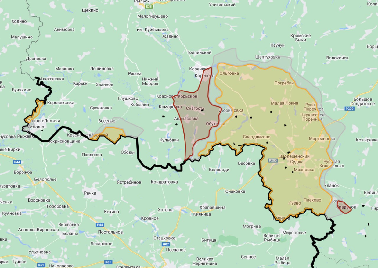 V Kurské oblasti se v souvislosti s postupem AFU na sever od Veseloje vytvořilo nové pásmo pod kontrolou AFU jižně od Gluškova. Celková plocha kontroly AFU v Kurské oblasti činí 893 km², s přihlédnutím k postupu ruských ozbrojených sil u Nikolajeva-Darjina.