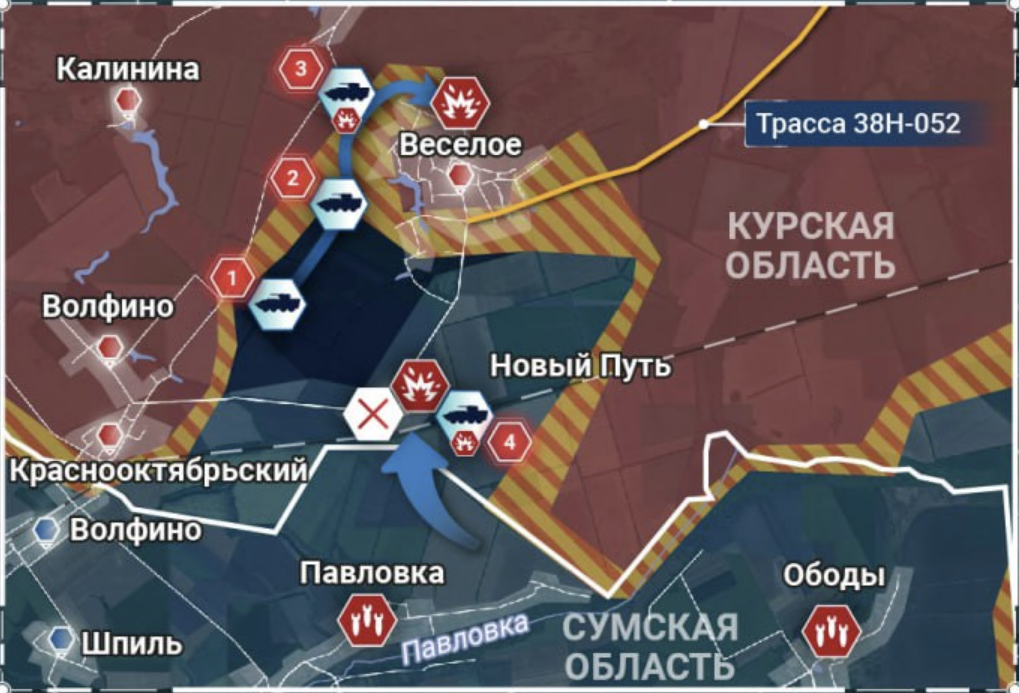 V Kurské oblasti AFU v posledních 24 hodinách zesilovala tlak na směru Nový Put - Veselé, rozšiřovala své pásmo kontroly u pohraničního města Volfino a snažila se Veselé obejít z levého křídla. V Suzhanském okrese hlásili aktivní akce našich jednotek jižně od Plechova