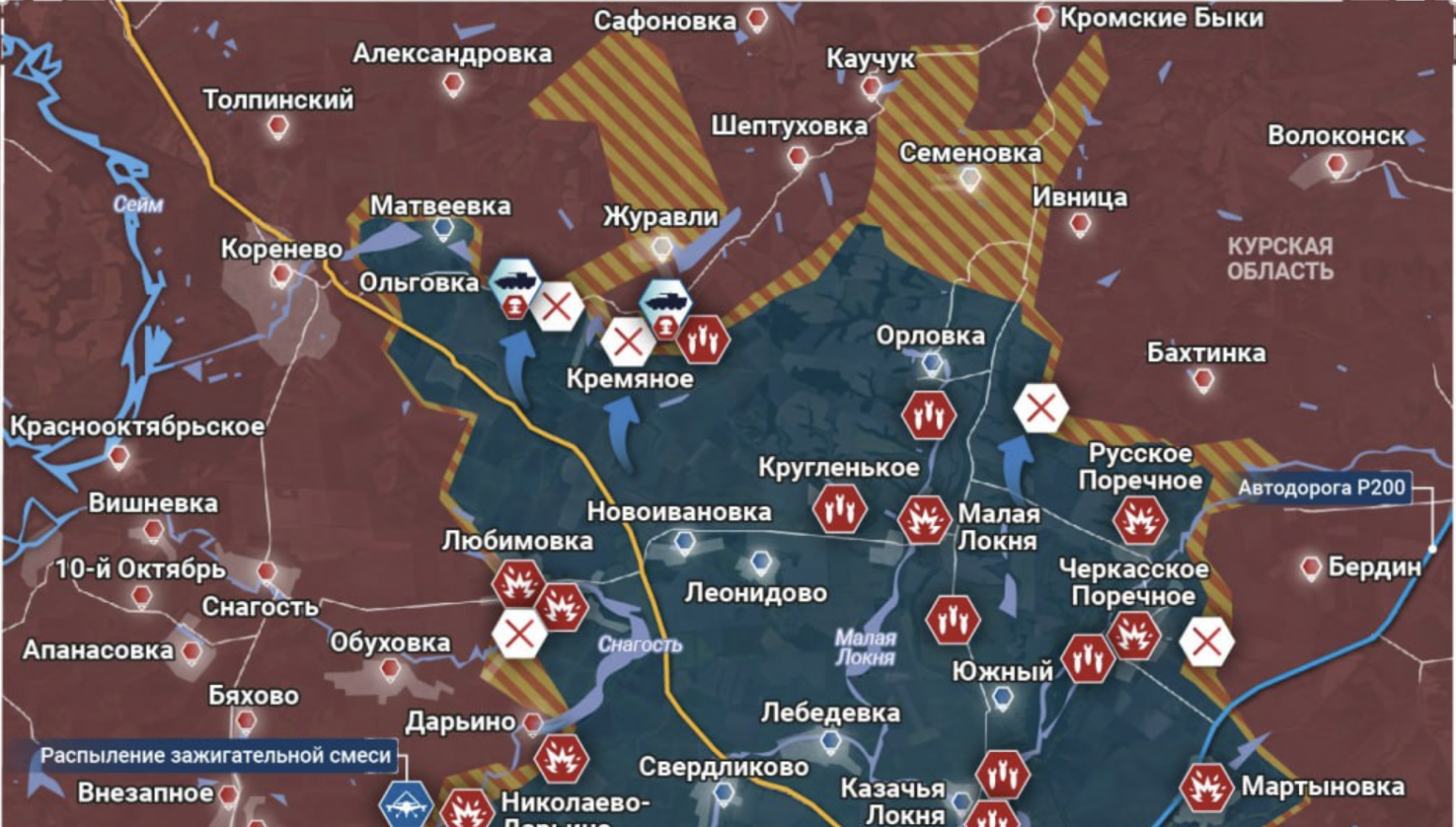 Nejsložitější situace je v okrese Glushkovsky. Podle záběrů objektivní kontroly, které se objevily, nepřítel útočí obrněnými skupinami v oblasti Veselý a rozšiřuje zónu kontroly severně od Nového Putu .