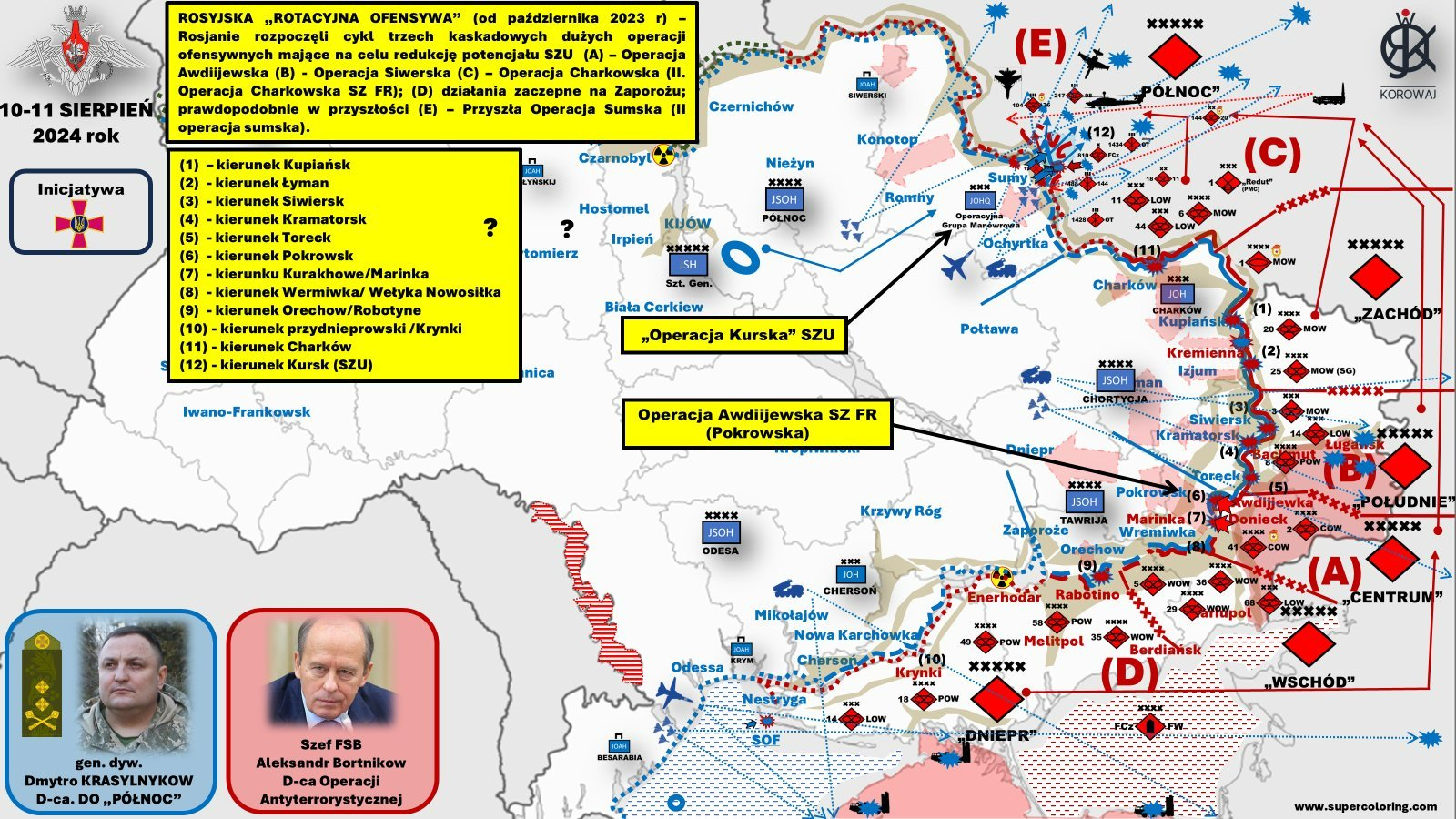 Podle Ministerstva zahraničních věcí Ruské federace ruské jednotkypomocí náletů, dělostřelectva a bezpilotních prostředků „[..] zmařil pokusy nepřátelských mobilních skupin s obrněnými vozidly prorazit hluboko na ruské území“. Není to tak, jak ministerstvo oficiálně uvádí. S přihlédnutím k dalším zdrojům a dílčím (neověřeným) informacím o bojích a místech vojenských operací, které nebyly popsány v oficiální zprávě ruského MO, lze předpokládat, že nejzajímavější, ale i krvavá bitva této operace (dosud ) proběhlo. Rusové doslova shodili do cesty Ukrajincům (částečně přistáním taktických vrtulníků a kolovým útokem) prvky 11. výsadkové útočné brigády „Černí vlci“ s úkolem udržet vesnici Šepukovka a zajistit postavení jižně od obce Pogrebek. . Samotné přistání proběhlo velmi hladce a bylo pro Ukrajince překvapením. Ale jejich reakce byla rychlá. Po útocích MLRS HIMARS (cca 70 % denního palebného úsilí) na pozice „Černých vlků“ brigáda výrazně ztratila schopnost odolávat a nebyla schopna zabránit rychlému postupu ukrajinských přepadových obrněných motorizovaných skupin. Ale to není všechno. Pokud se útok a přítomnost „Černých vlků“ v této lokalitě potvrdí, jsou zde velmi zajímavé informace o praktickém využití přistání taktických vrtulníků v obranných operacích. Nejzajímavější je, a existují i ​​nepotvrzené informace, že na stejném místě provedli Ukrajinci také přistání taktického vrtulníku. S největší pravděpodobností to udělali pomocí prvku překvapení skokem přes nepřítele zasaženého HIMARS. „Bitva padlých chodců“ je něco jedinečného. Samozřejmě, pokud je to pravda, oba týmy bojujících stran jsou „na vysoké úrovni“ a hrají s maximálním rizikem. Zejména proto, že Rusové během posledních dvou dnů vrhli do této oblasti asi 90 % svého úsilí v oblasti letectví a dronů. Chápu, že to neudělali bez důvodu. V konečném důsledku tam probíhají velmi kruté boje, zejména u Leszynky, což znamená, že vojenské operace probíhají asi 18 km od Logówa. Navíc bylo potvrzeno, že síly MGO SZU obsadily a vyčistily vesnici Alekseevskii. To znamená, že Ukrajinci mohli toto vylodění porazit a ruské ozbrojené síly se tím moc chlubit nechtějí. MGO SZU dobylo i Pogrebki a chystá velký útok směrem na Logów, ke kterému jsou již 24 hodin v pohotovosti Rusové, aby shromáždili všechny volné jednotky z fronty, tedy „vše, co neuteče na strom“.