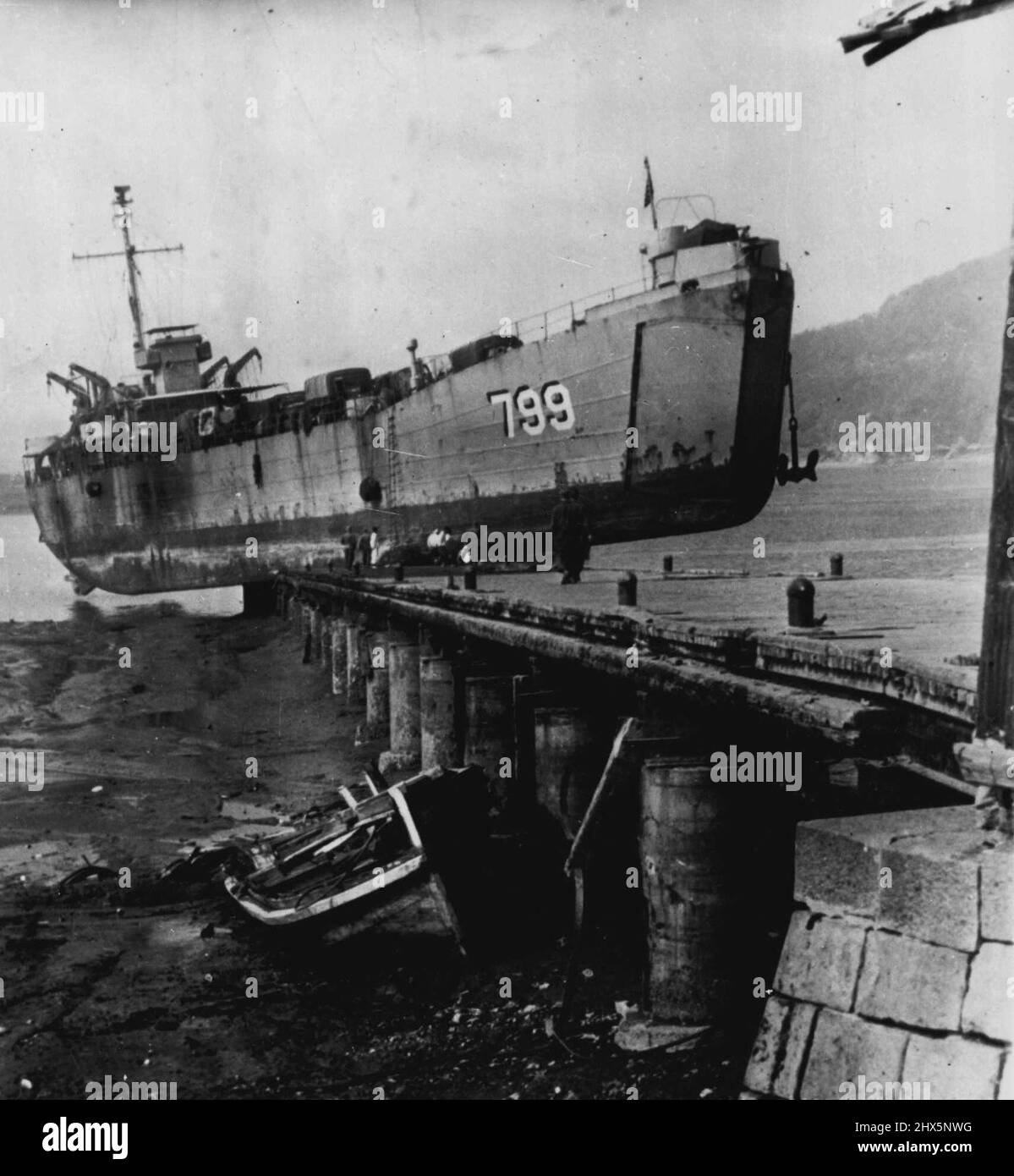 Tanková výsadková loď LST799 během vylodění u Inčchonu za války v Koreji, kde uvízla během odlivu :D