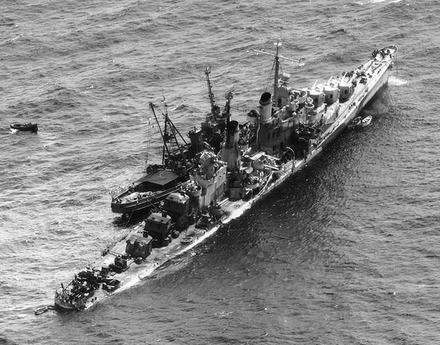 Ovšem, USS Reno po zásahu torpédem z japonské ponorky koncem roku 1944 u Filipín, tuhle fotku má Hubáček ve své knize Boj o Filipíny :)