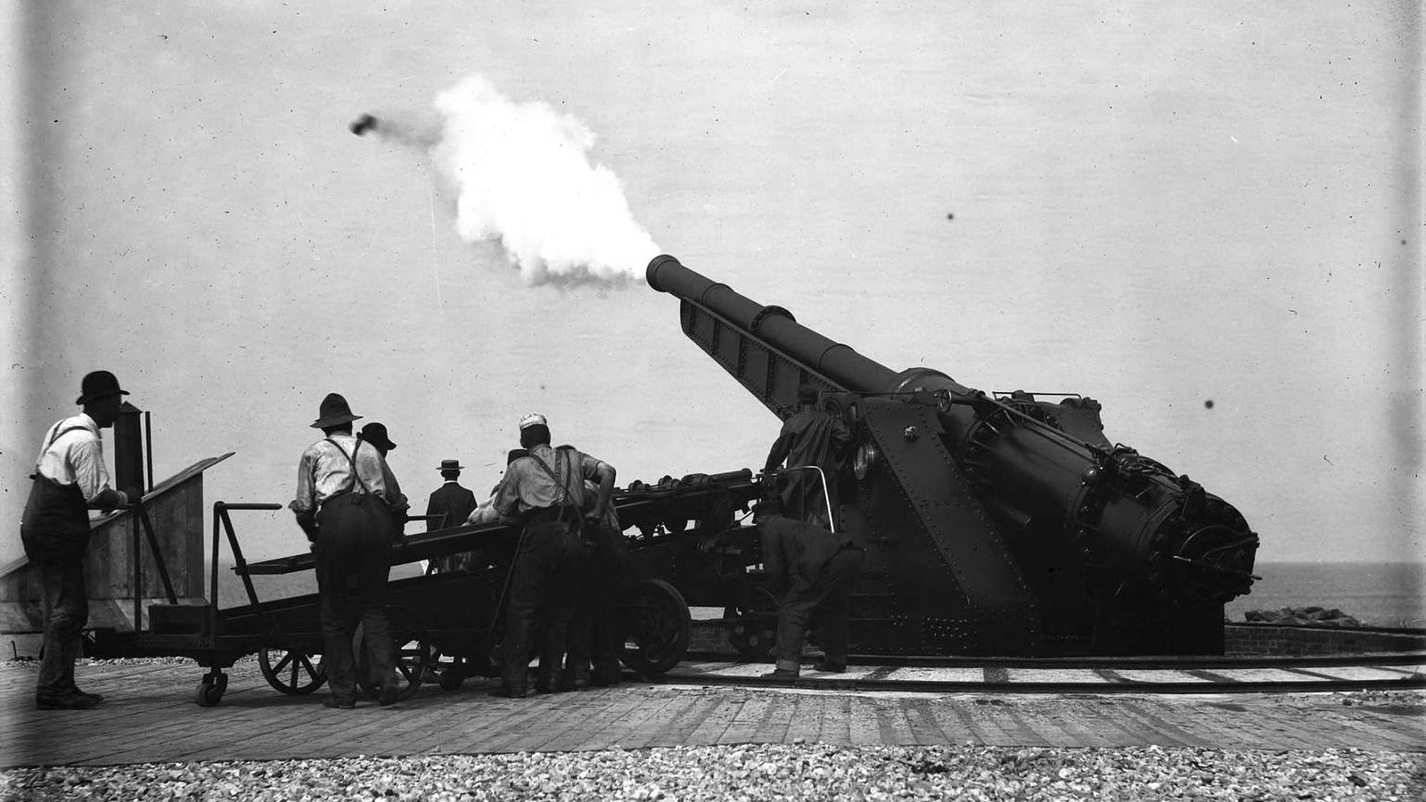 První úspěšný prototyp postavil D. M. Medford, učitel z Toleda v Ohiu, a roku 1883 jej předvedl americké armádě ve Fort Hamilton v New Yorku. Kanón ráže 51 mm (2 palce) dokázal vystřelit celokovovou střelu o hmotnosti 2,3 kg na 800 m a prostřelit víc jak půl metru litého betonu. Koncept zaujal jednoho z přihlížejících dělostřeleckých důstojníků, kapitána jménem Edmund Louis Gray Zalinski (1849-1909). Jeho nově založená společnost