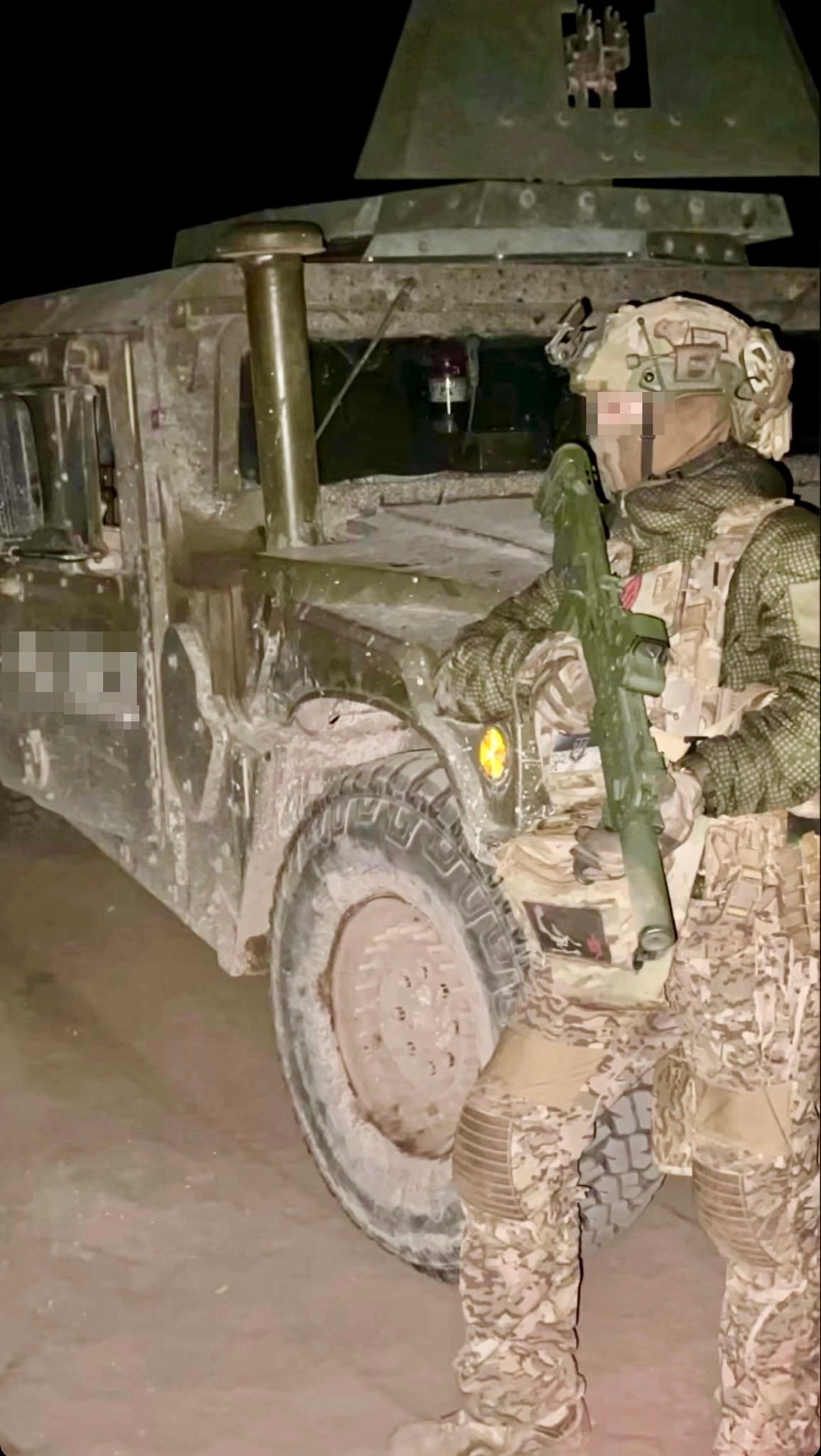 Ukrajinský operátor SSO SOF s puškou Maljuk a americkým HMMWV, během noční operace v Charkovské oblasti.