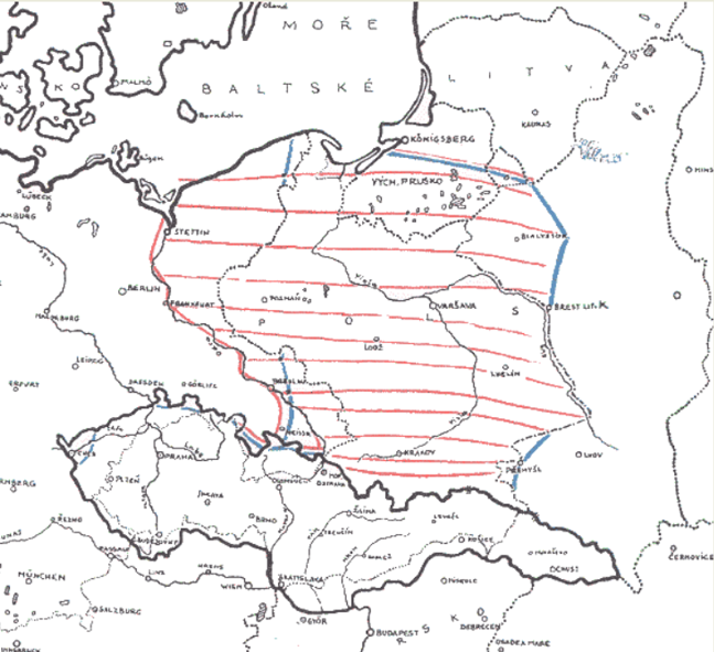 Modře kreslil do mapy Beneš, červeně Sovětští představitelé