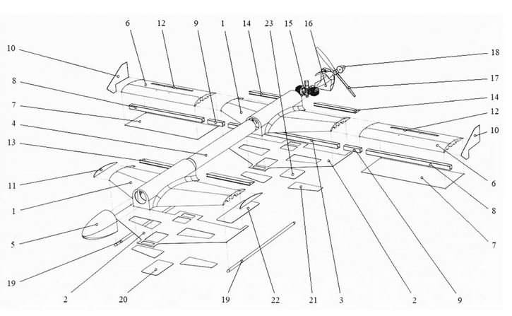 Průzkumný úderný bezpilotní letoun Mohajer-6 íránské výroby s řízenými střelami Ghaem-5, který spadl kdesi v Kurské oblasti v Rusku.