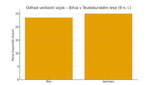 Počty vojsk v Bitvě v Teutoburském lese (r. 9 n. l.) jsou poměrně dobře známy, protože je popisují jak Velleius Paterculus, tak Tacitus a pozdější římské prameny. Níže je nejvíce historicky přijímaný odhad: