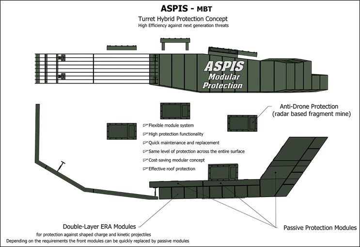 Řecký Leopard 2A4 osazený bloky reaktivní ochrany ASPIS-NG od společnosti EODH.