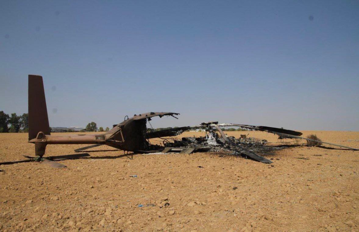 Snímky zničeného izraelského vojenského transportního vrtulníku CH-53 Super Stallion, zničeného před týdnem Hamásem.