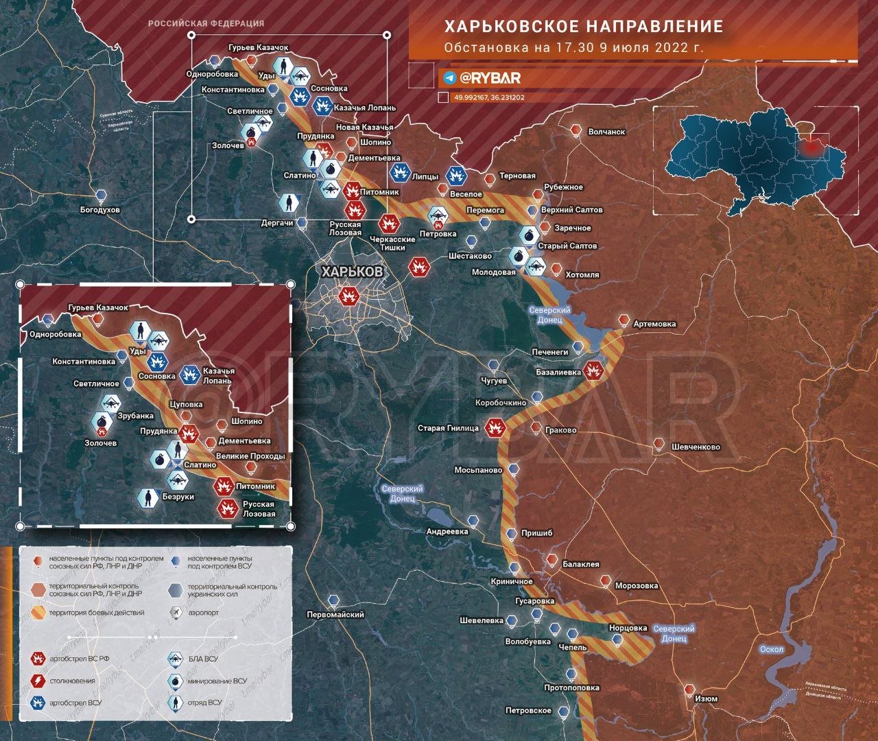 ▪️ Ruské síly zahajují ofenzivu na některých úsecích fronty na severu Charkovské oblasti: boje probíhají u Pjatomniku. Ruské ozbrojené síly udeřily na nepřátelská stanoviště v Charkově, Prudjance, Cyrkunech a Petrovce.