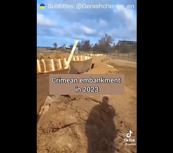 Z nějakého důvodu kopou rusové zákopy i na samotném Krymu, ne ale jen na Severu, ale i na Západě. Takhle to vypadá na jedné pláži. Jenom připomenu, že podobné opevnění (ale i s rozsocháči) stavěli Ukrajinci v Oděse, když hrozil ruský námořní výsadek (na začátku války).