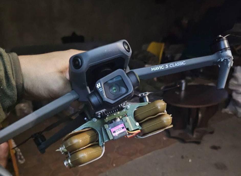 Mavic 3 se čtyřmi protipěchotními minami PFM-1. Možná jich je dokonce 8 kousků.
