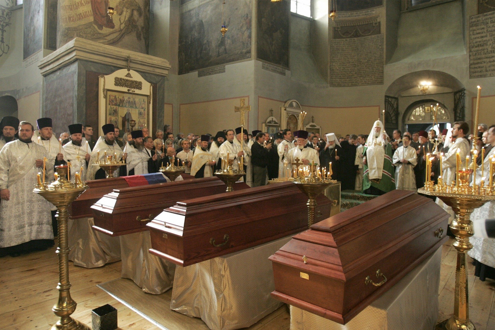 Pohřeb bělogvardějských vojáků v Donském klášteře v Moskvě. Během Putinovy vlády došlo v Rusku k rehabilitaci "bílého Ruska", tj. lidí, kteří bojovali s bolševiky.