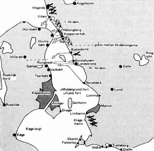 Švédské a dánské síly se postupně začali koncentrovat v jižním cípu Skandinávského poloostrova. Datum invaze nebyl konkrétně stanoven, ale švédský generální štáb počítal, že akce by byla připravena nejdříve 18. května. První vlna 6000 mužů měla zaútočit na dánské město Helsingør, podporovaná pobřežním dělostřelectvem z okolí protilehlého švédského Helsingborgu. Pevnostní děla ráže 150mm a 210mm by byla dále doplněna pobřežními bitevními loděmi Oscar II. a Tapperheten. K letecké podpoře invaze byla do regionu Skåne přepravena většina švédského letectva. Operace nicméně nakonec nebyla spuštěna, neboť Německo 8. května kapitulovalo a s ním i posádka bránící dánský hlavní ostrov. Jiná situace ovšem panovala na ostrově Bornholm, který byl od začátku května silně bombardován Sověty. Velitel ostrova kapitán Gerhard von Kamptz se Rusům odmítal vzdát a netrpělivě očekával příchod angloamerických sil. Spojencům měl poslat i několik telegramů, ve kterých je vyzýval, aby vyslali alespoň jednoho vojáka kterému se mohou vzdát, leč marně. Protože Kemptz nedodal sověty požadovanou písemnou kapitulaci, sovětská letadla zahájila masivní bombardování a zničila přes 800 domů v obcích Rønne a Nexø. Dalších 3 000 domů bylo mezi 7.a 8. květnem poškozeno. Zajímavostí je, že na ostrově byla umístěná radarová stanice a tak Němci o náletech předem věděli. Obyvatelé se mohli včas ukrýt a naštěstí při nich došlo jen k minimálním civilním ztrátám. Patová situace se nakonec vyřešila, když 9. května došlo k vylodění sovětských jednotek a po krátké přestřelce se 12 000 německých obránců vzdalo. Sověti nakonec opustili ostrov až 5. dubna následujícího roku.