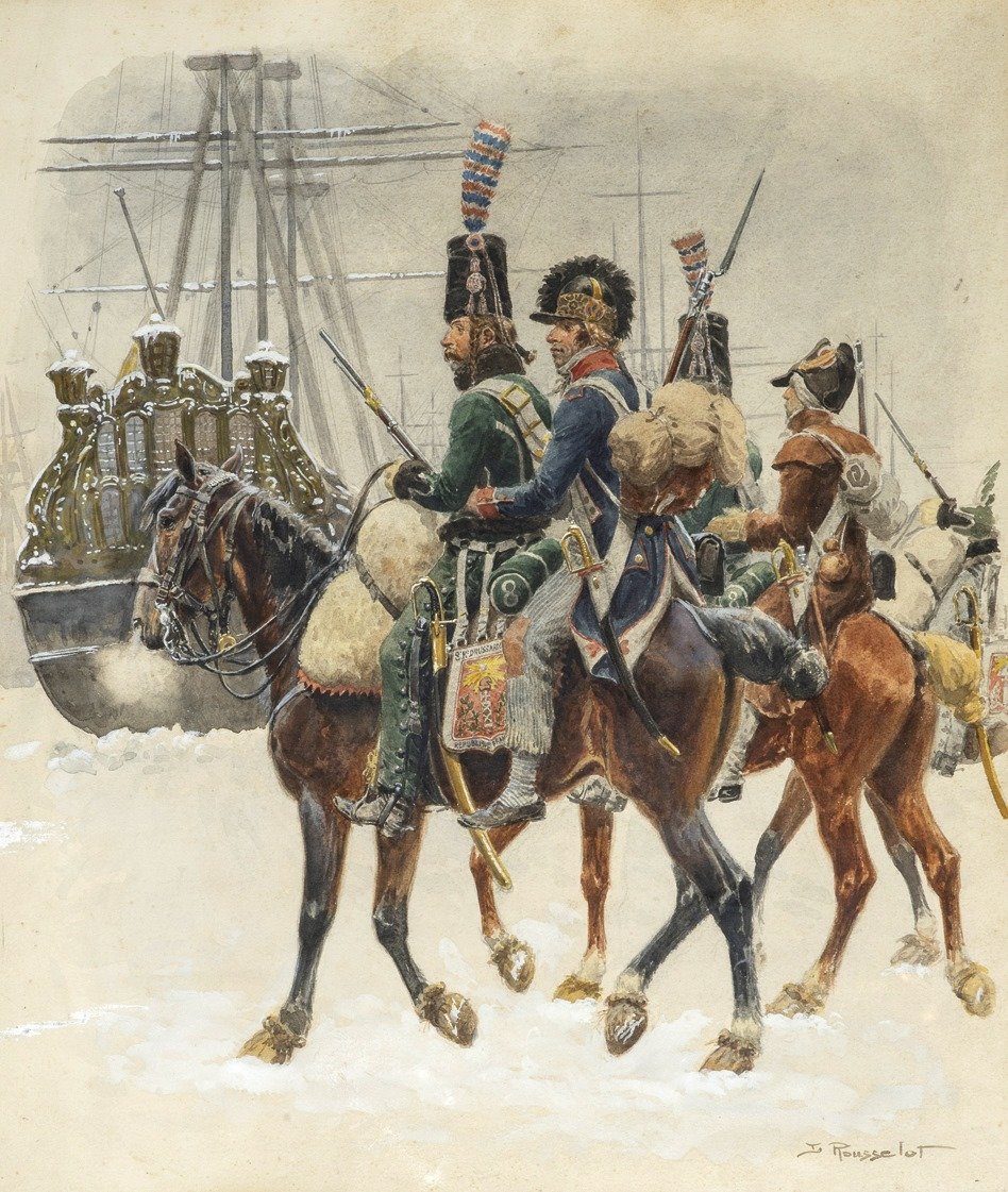 K neskutečně kuriózní události došlo v noci 23. ledna 1795. Tehdy se francouzským husarům podařilo zabrat holandskou flotilu zamrzlou poblíž přístavu Den Helden. Zabráno bylo celkem 14 lodí s celkem 850 děly na palubě (!) a celá událost se obešla bez ztrát na životech. K události došlo během Války první koalice - což byl první pokus evropských monarchií porazit revoluční Francii. Francie vyhlásila válku Habsburské monarchii 20. dubna 1792 a Prusko se přidalo o několik týdnů později. Jednalo se o součást série válek v letech 1792 až 1802, označované jako Francouzské revoluční války. Velitelem francouzské armády, při invazi do Holandska, byl generál Jean-Charles Pichegru. Samotná kampaň byla zahájena na podzim 1794 a jeho armáda vstoupila do Amsterdamu 19. ledna 1795, kde se rozhodla přezimovat. Pichegrovi se podařilo zjistit, že holandská flotila byla tou dobou zakotvena v přístavu Den Helder, přibližně osmdesát kilometrů severně od Amsterdamu. Přístav Den Helden se nacházel až na samé severní špičce Holandska, jižně od ostrova Texel. Mezi nimi se nacházela mělká zátoka zvaná Zuiderzee. Ta byla ve 20.století přehrazena, čímž vzniklo sladkovodní jezero. Zpět ale k tématu. Pichegru neprodleně nařídil brigádnímu generálu jménem Jan Willem de Winter (1761-1812) aby se pokusil tyto lodě zajistit. Velice trefné je jméno tohoto vojáka, které by se dalo přeložit jako „generál Zima“, a právě zima měla Francouzům dopomoci k zářnému vítězství. Samotný de Winter pocházel z holandského Kampenu a ve francouzských službách sloužil od roku 1787, k provedení úkolu mu bylo svěřeno velení nad 8. husarským plukem. Francouzům se podařilo k Den Helden dorazit v noci z 23. ledna a zajímavostí je, že každý jezdec s sebou na koni vezl rovněž pěšáka z 15. pluk řadové pěchoty. Nizozemská flotila čítající 14 lodí, se nacházela v přístavu přesně dle informací a v pohybu jí bránil pevný led. Stále ale nebylo vyhráno, jelikož na lodích se nacházelo celkem 850 děl (!) Jelikož bylo nutno nepřítele překvapit a neprobudit spící námořníky, byla koňská kopyta opatřena návleky z látky a slámy. Útok vedl podplukovník Louis Joseph Lahure. Led zůstal pevný, nepřítele se podařilo překvapit a flotilu se podařilo obsadit beze ztrát.