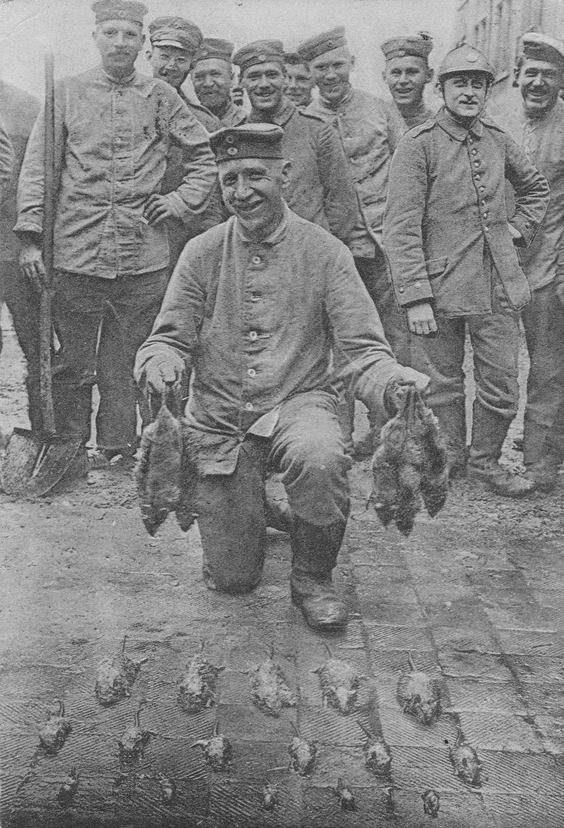 Velkým problémem obou bojujících stran byly krysy. Ty se živily všudypřítomnými mrtvolami a dorůstaly velkých rozměrů. Kdo neviděl stovky krys dorůstajících občas velikosti kočky, těžko uvěří. Požíraly otevřené konzervy, oblečení, zkrátka vše, na co přišly. V noci přebíhaly přes obličeje spících vojáků. Rovněž zranění vojáci, kteří se nemohli sami bránit, byli vystaveni napadání těchto zlořádů. Krysy navíc přenášely vši, blechy a infekce. Byly zkrátka velkým problémem, skoro tak velkým jako samotný nepřítel. Vojáci se je snažili lovit, jak jen uměli. Stříleli je a ubíjeli pažbami pušek. Brzy pochopili, že to je zcela marný boj. Britský pěšák Richard Beasley vzpomínal: "Bylo to strašné. Pod každým mrtvým tělem byly tři až pět krys. Pojídaly maso, začínaly na očích a na hlavě. Byly příšerně veliké, bušilo mi srdce, když jsem to poprvé viděl. V noci mi přebíhaly přes tvář. Pokud jsem někde nechal jídlo, do rána bylo pryč. V noci bylo prakticky stále slyšet kousání a pobíhání krys." Vojáci se rychle naučili zapojit do boje čtyřnohé pomocníky. Kočky se neosvědčily, jelikož lovily krysy pouze po kusech a také je často dokázaly obklíčit a přemoci. Oproti tomu teriéři zabíjeli krysy, dokud nějaké v jejich okolí byly a jeden pes tak dokázal během čtvrt hodiny zlikvidovat desítky krys. Nutno podotknout, že likvidování krys na čas (pomocí teriéra), bylo oblíbenou kratochvílí britských gentlemanů i v předválečné době. Možná si říkáte, co se dělo s ulovenými krysami. Pokud vím, tak často byly stahovány pro svou kůži, ale v případě nouze vylepšily i jídelníček. Na bídnou situaci českých vojáků bojujících na Piavě v Itálii, vzpomínal Jan Baláta z Nenkovic. "Byli jsme v bahně v zákopech, jídlo za 4 dny, špína, hygiena nulová, vykonávali tělesnou potřebu do jámy v zákopu, jedli pečené krysy a citrony. Ani chleba nebyl k mání."