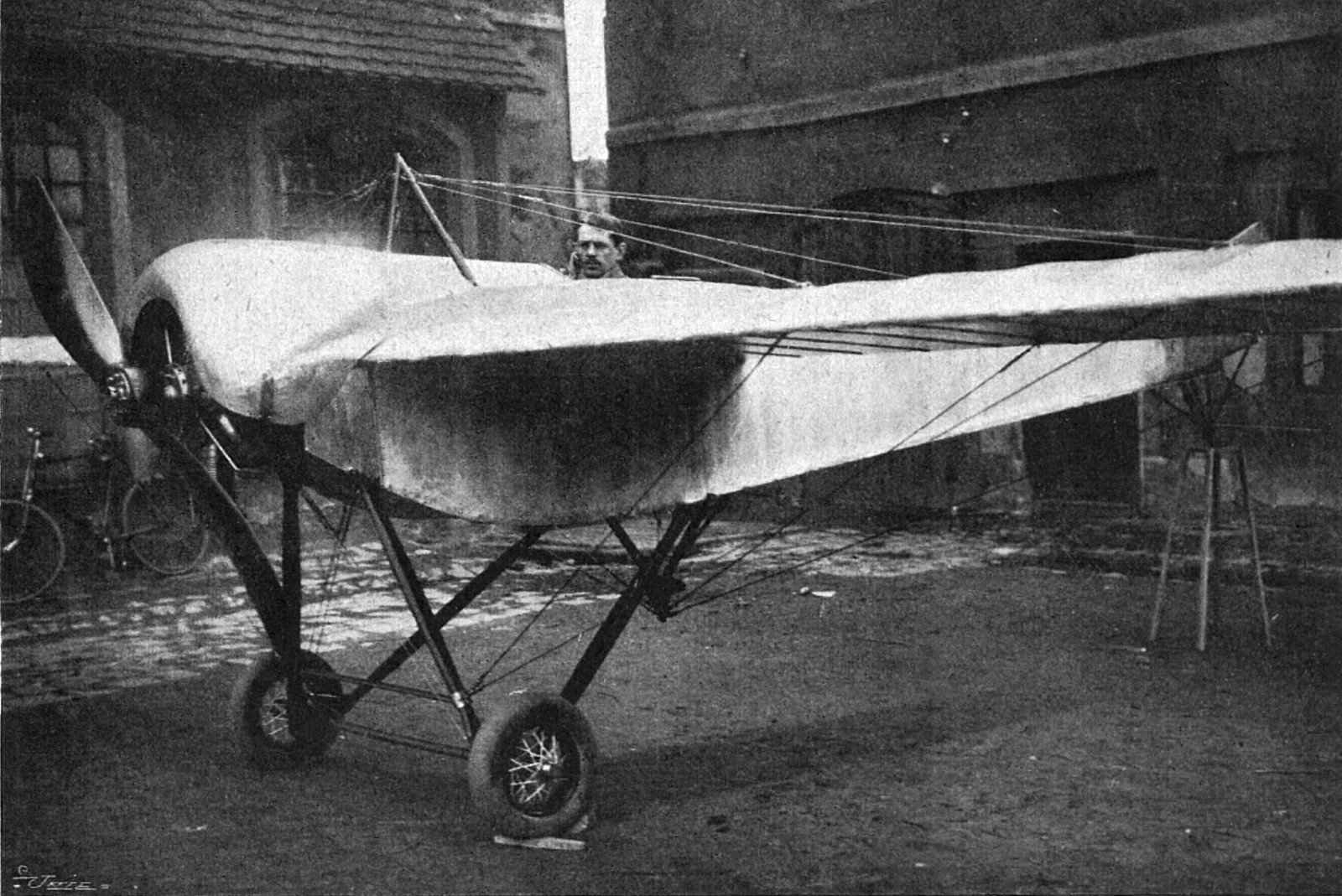 Kašparovo dvousedadlové letadlo JK v září 1910. Zleva: