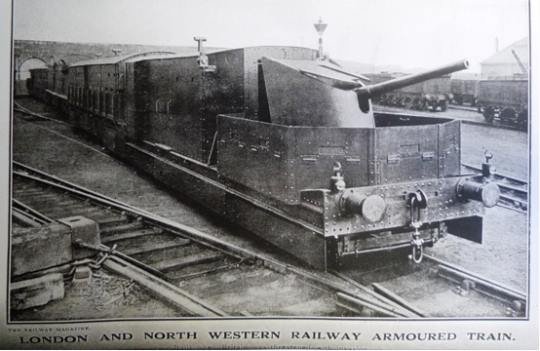V roce 1914 bylo rozhodnuto, že součástí opatření proti možné německé invazi na Britské ostrovy bude umístění obrněného vlaku na východní pobřeží. V prosinci byly od Caledonian Railway zakoupeny dva 30t vagony, od Great Western Railway dva 40t uhelné vagony a od Great Northern Railway lokomotivy. Stavba obrněného vlaku probíhala v dílnách London and North Western Railway ve městě Crewe. Dělové vagony byl vyzbrojeny dvanáctiliberními děly, byly v nich zřízeny sklady munice a kanceláře. Uhelné vagony byly přestavěny na pěchotní, s velkým množstvím střílen z ručních zbraní a kulometů. V průběhu války byl obdobný vlak nasazen rovněž ve Skotsku. V roce 1919 byly oba vlaky odstrojeny v Longmoor Military Railway, přičemž lokomotivy byly v roce 1923 vráceny společnosti London and North Western Railway.