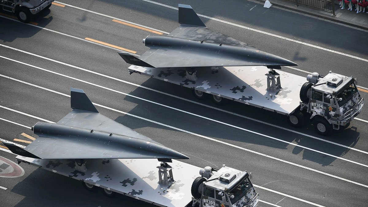 Detailní záběry onoho zahaleného dronu WZ-8. Patrně je vypouštěn z upraveného bombardéru Xian H-6: