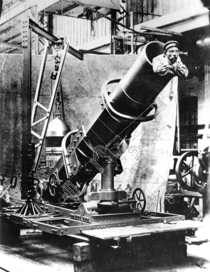 fotografie s dělníkem v hlavni, který byl později vyretušován