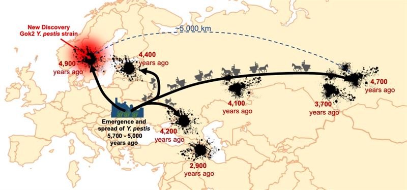 Téměř pět tisíc let starý masový hrob ve Švédsku odhalil překvapivé tajemství. Při analýze ostatků dvacetileté ženy našli vědci nejstarší známý kmen bakterie Yersinia pestis, která způsobuje mor, jednu z nejobávanějších lidských nemocí. Právě on mohl vyvolat první známou pandemii v historii, která zdecimovala lidské osídlení napříč celou Evropou na konci doby kamenné. Objev tak může přepsat to, co víme o historii pravěké Evropy. Aby lépe porozuměli evoluční historii moru, použili vědci z Francie, Švédska a Dánska veřejně dostupná genetická data pravěkých lidí, ve kterých hledali genové sekvence podobné moderním kmenům moru. Zaměřili se přitom zejména na naleziště Frälsegården ve Švédsku. Zde byl již dříve objeven masový hrob 78 lidí, kteří zemřeli v relativně krátkém časovém úseku, což naznačuje možnou epidemii. V genetickém materiálu dvacetileté ženy, která zde zemřela přibližně před 4900 lety, objevili dosud neznámý kmen původce moru. Jeho analýza přitom prokázala stejné genetické mutace, které obsahuje plicní mor, nejsmrtelnější forma historické i moderní infekce způsobené bakterií Y. pestis. Stopy stejného moru pak byly nalezeny i u dalšího jedince ze stejného hrobu. Objevený kmen moru je nejen nejstarší, který známe, ale při porovnání s dalšími kmeny dokázali vědci zjistit, že je také nejzákladnější. To znamená, že jsme se díky němu dostali zatím nejblíže ke genetickému původu Y. pestis. Tento kmen se měl oddělit přibližně před 5700 lety, zatímco k oddělení moru známého v době bronzové a předka dnešních kmenů došlo před 5300, respektive 5100 lety. To naznačuje, že na konci doby kamenné již existovalo několik kmenů moru. Před zhruba 5000 lety proběhla masivní migrace z euroasijských stepí do Evropy, ale jak tito lidé dokázali vytěsnit místní neolitickou kulturu prvních zemědělců, je stále předmětem debaty. Předchozí výzkumy naznačovaly, že si nájezdníci přinesli s sebou mor, který zlikvidoval velká osídlení zemědělců doby kamenné v Evropě. Pokud se však kmen moru nalezený ve švédské ženě oddělil od zbytku Y. pestis před 5700 lety, znamenalo by to, že se vyvinul předtím než migrace začala a kolem doby, kdy se začalo evropské neolitické osídlení hroutit. V té době začínají být v Evropě běžná megasídliště, která mohla mít 10 až 20 tisíc obyvatel. To umožnilo vznik nových pracovních specializací, nových technologií a obchodních možností. Na druhou stranu však také mohla být dokonalým semeništěm pro mor. Tato megasídliště byla ve své době největšími osadami Evropy, desetkrát větší než cokoli jiného. Lidé, zvířata a potraviny byli pohromadě na malém prostoru v pravděpodobně velice špatných hygienických podmínkách. Jde o učebnicový příklad toho, co potřebujete k vyvinutí nových patogenů. Mor se poté mohl šířit podél všech obchodních tras. Usnadnil mu to i vynález kola a používání vozů, které se v tomto období rychle šířily Evropou. Nakonec se mohl mor díky těmto obchodním interakcím dostat i do malé osady ve Švédsku, kde žila zkoumaná žena. Moderní Evropané tedy dorazili do již téměř vyprázdněných oblastí, čemuž nasvědčuje i fakt, že v době, kdy žena zemřela, se neobjevily žádné stopy po nájezdnících.