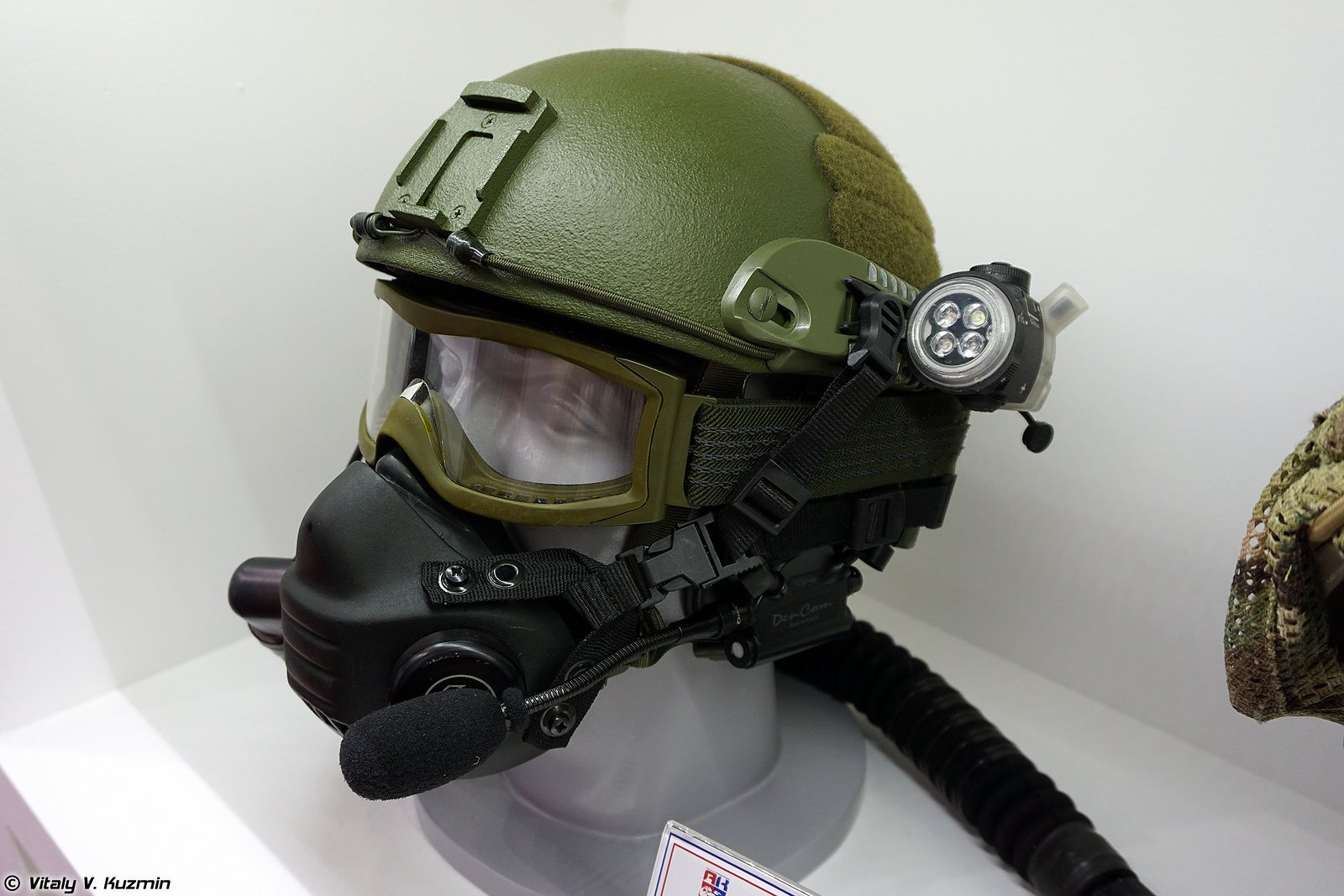 Bojová ochranná souprava Permyachka-MM (1-2), Vityaz-OS (3) a potom přilba LShZ-PU (4).