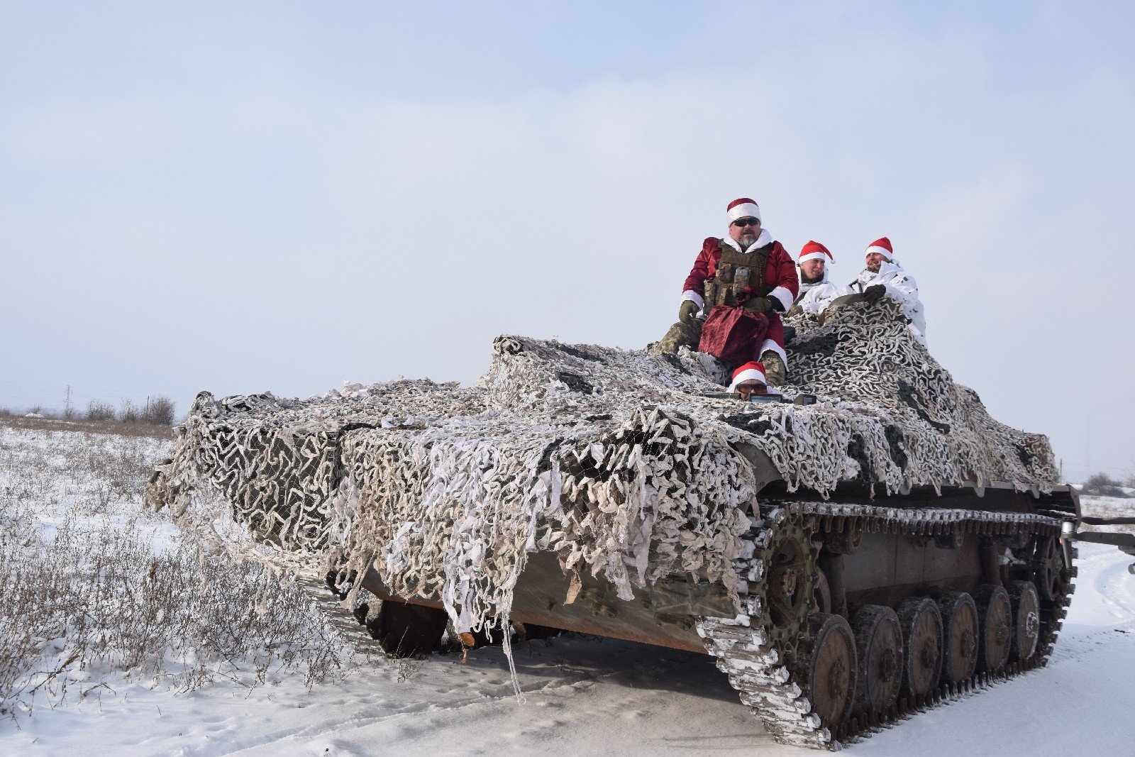 Dneska na Ukrajině Mikuláš rozváží dárečky. Za mě jsou hodně zajímavé už jen ty maskovací sítě na BMP.
