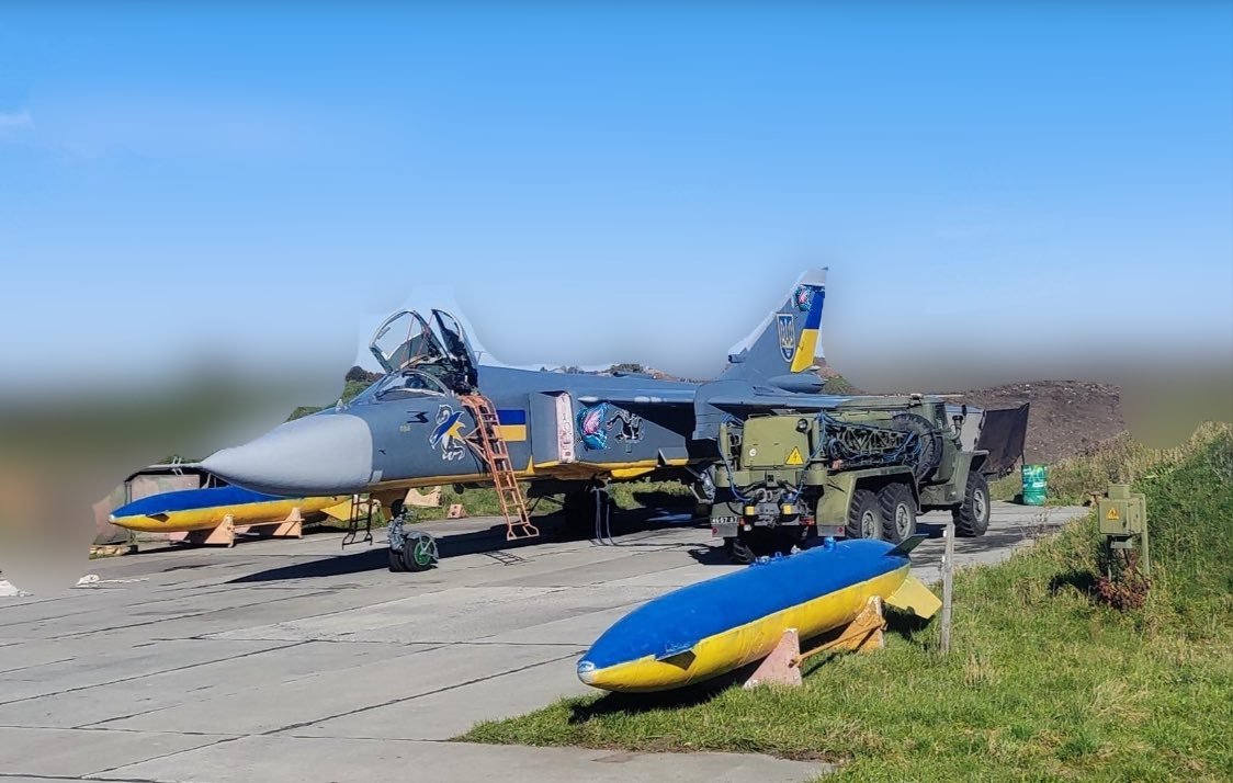 Ukrajinský Suchoj Su-24M je nadzvukový, dvoumístný, dvoumotorový hornoplošný taktický bombardér s měnitelnou geometrií křídel určený pro boj za každého počasí, vyvinutý v časech SSSR. Maximální hmotnost výzbroje činí 8000 kg na 8 závěsnících.
