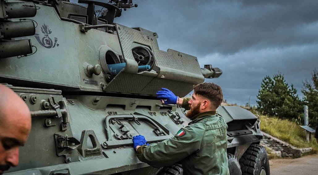 popisek u videa: Videozáznam italského obrněného vozidla B1 Centauro v Kubince (NII-38), pokus o vyproštění obrněného vozidla po opuštění zkušební dráhy.
