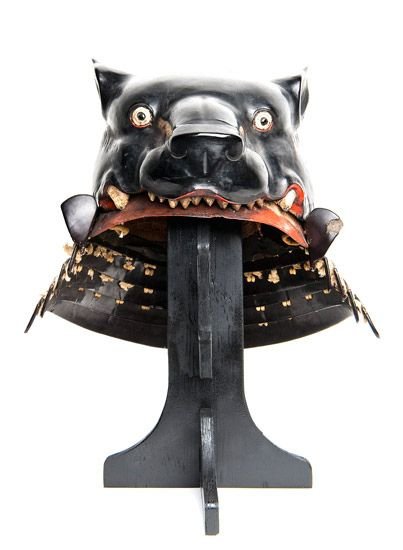 Exotické přilby japonských samurajů byly zdobeny výraznými ornamenty a plastikami vytepanými z plechu nebo papier-mâché - směsi papíru a lepidla.