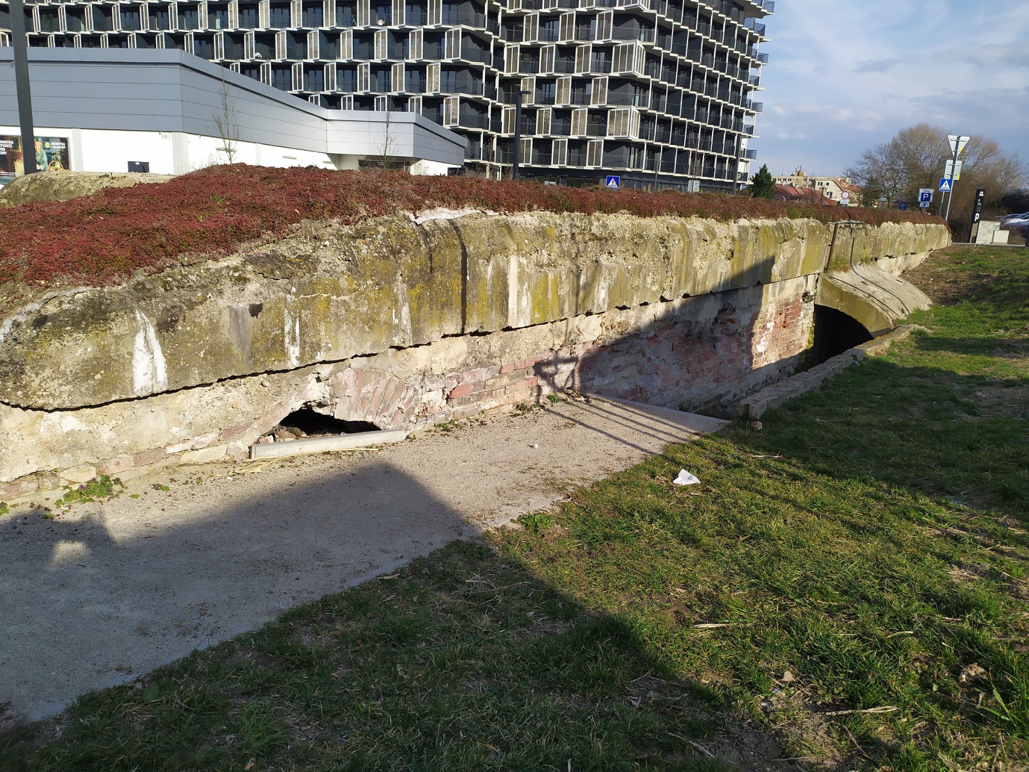 Tak kaverna je bez plotu! Uprostred sídliska sa tak nachádza vyše storočná stavba z I. svetovej vojny. Ako som predpokladal, solídna mreža vo vchode bráni prístupu nepovolaných "archeológov". Zároveň však bráni fotke vnútornýých priestorov.